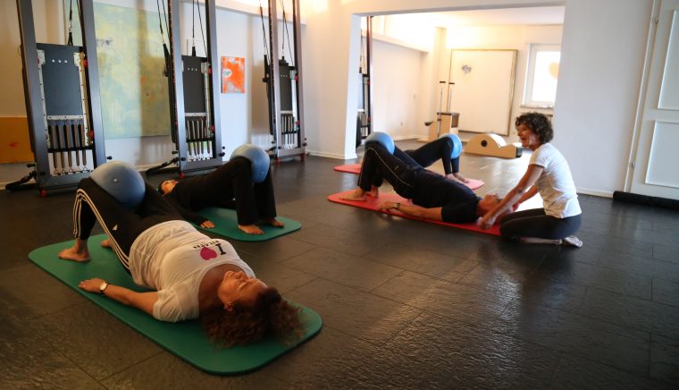 Das Gruppentraining findet auf der Matte (bis 8 Personen) und auf dem Allegro Reformer (bis 5 Personen) statt.